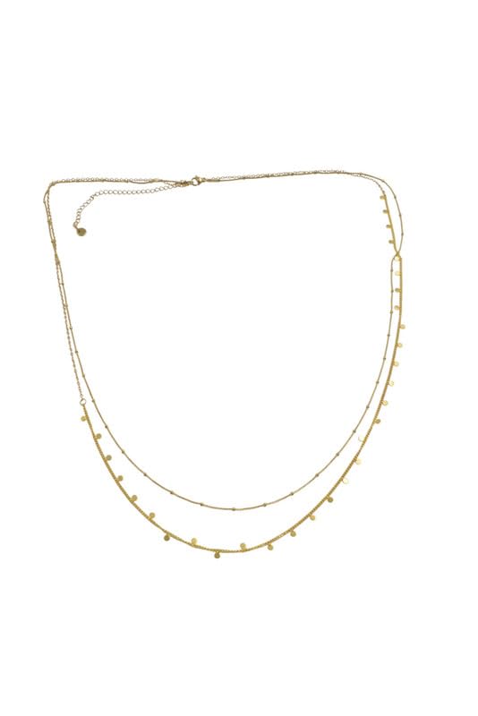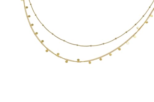 Generic - عقد من الستانلس ستيل بطبقات مسبقة ومطرزة على شكل قرص للنساء - ذهبي