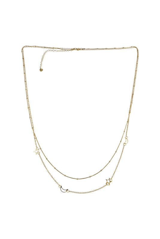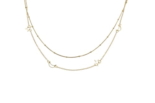 Generic - عقد من الستانلس ستيل بطبقات مسبقة على شكل قمر ونجوم للنساء - ذهبي