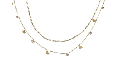 Generic - عقد بدلاية على شكل قلب بطبقات مسبقة من الستانلس ستيل للنساء - ذهبي