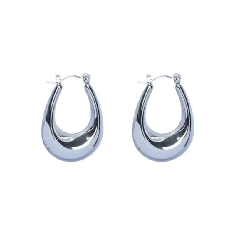Generic - حلقان دائرية سميكة على شكل دمعة من الفولاذ المقاوم للصدأ للنساء، قطعتين