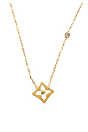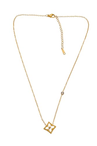 Generic - عقد بقلادة من الستانلس ستيل رباعي الفصوص للنساء - ذهبي