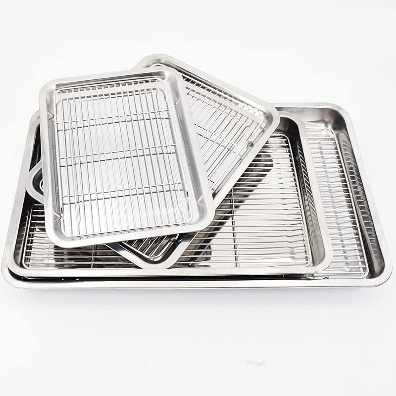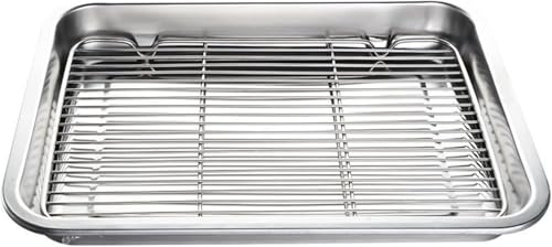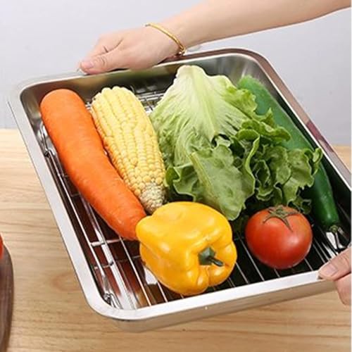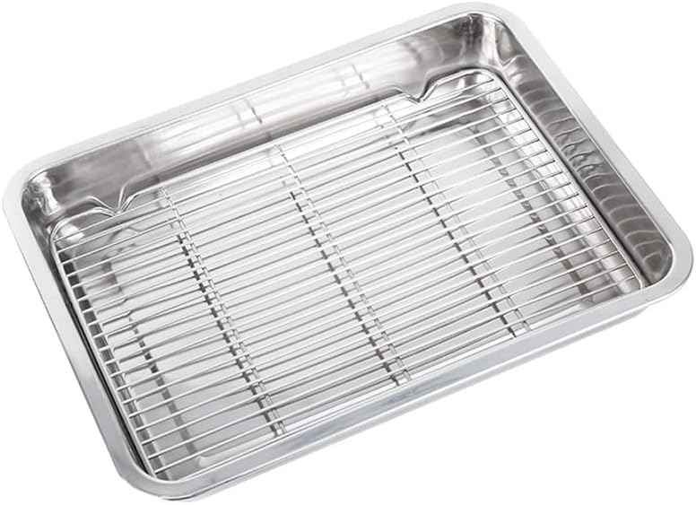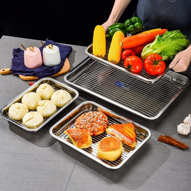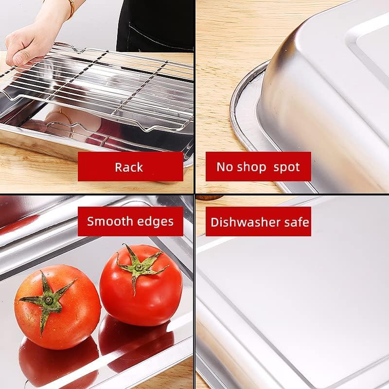Generic - صينية شوي فرن استانلس ستيل مستطيلة مع شبكة للشوي ومقابض جانبية متينة مقاومة للصدأ متعددة الاستخدام لتحضير المندي والكبسة والطواجن والكيك بجودة عالية للمطبخ العصري