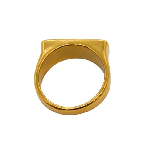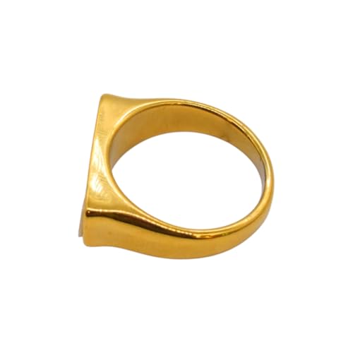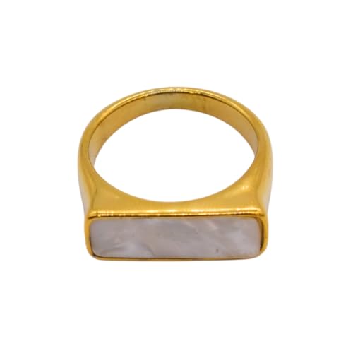 Generic - خاتم مستطيل من الستانلس ستيل مزين باللؤلؤ للنساء، مقاس 19 - ذهبي