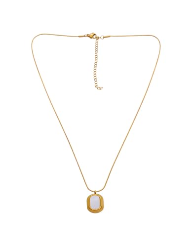 Generic - عقد بقلادة مستطيلة من اللؤلؤ الابيض من الستانلس ستيل للنساء - ذهبي FA444