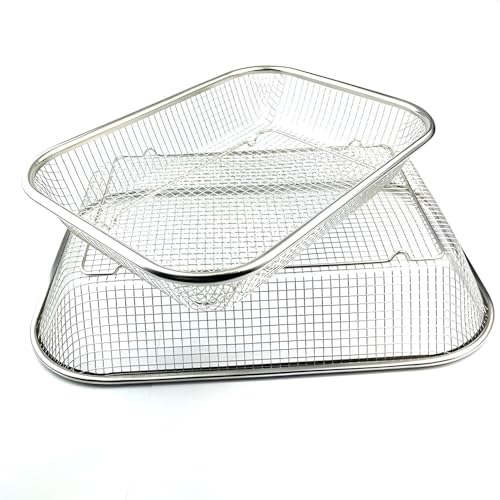 Generic - صفاية وسلة قلاية هوائية من الفولاذ المقاوم للصدأ متعددة الأغراض لغسل وطهي الخضروات والفواكه والروبيان وحلقات البصل والبطاطس المقلية، مقاس 37 × 27 × 9 سم، قطعتين