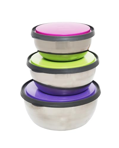 Generic - طقم علب ثلاجة ستانلس ستيل بغطاء 3 قطع - فضي