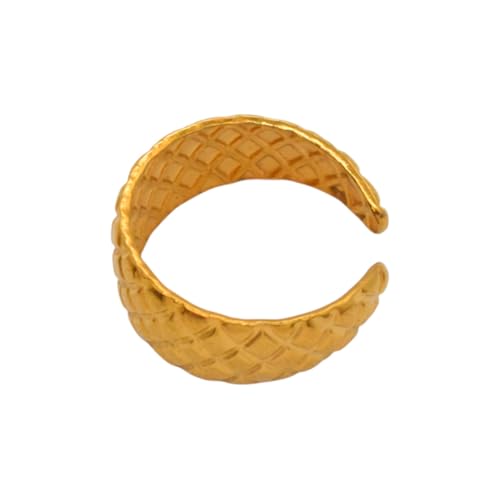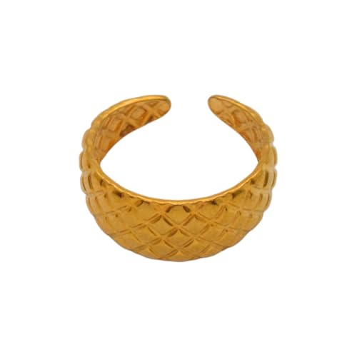 Generic - خاتم للنساء من الستانلس ستيل بتصميم مضلع، مقاس واحد - ذهبي