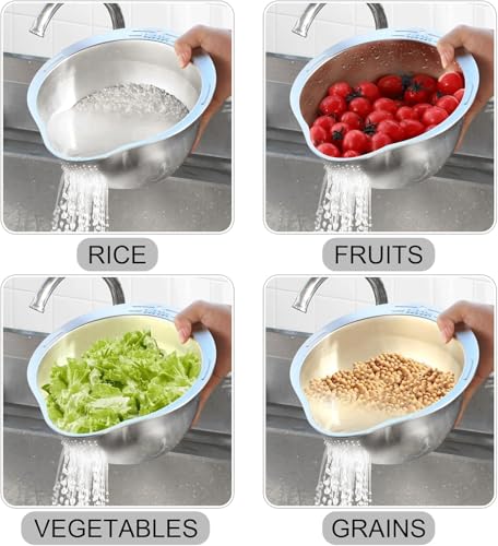 JLLYGOUS - مصفاة أرز من الفولاذ المقاوم للصدأ، مصفاة المكرونة آمنة غذائيًا مع فوهة سكب، طبق غسيل الأرز، مصفاة كولاندر من الفولاذ المقاوم للصدأ لغسل وتصريف الكينوا والفاكهة والخضروات (1)