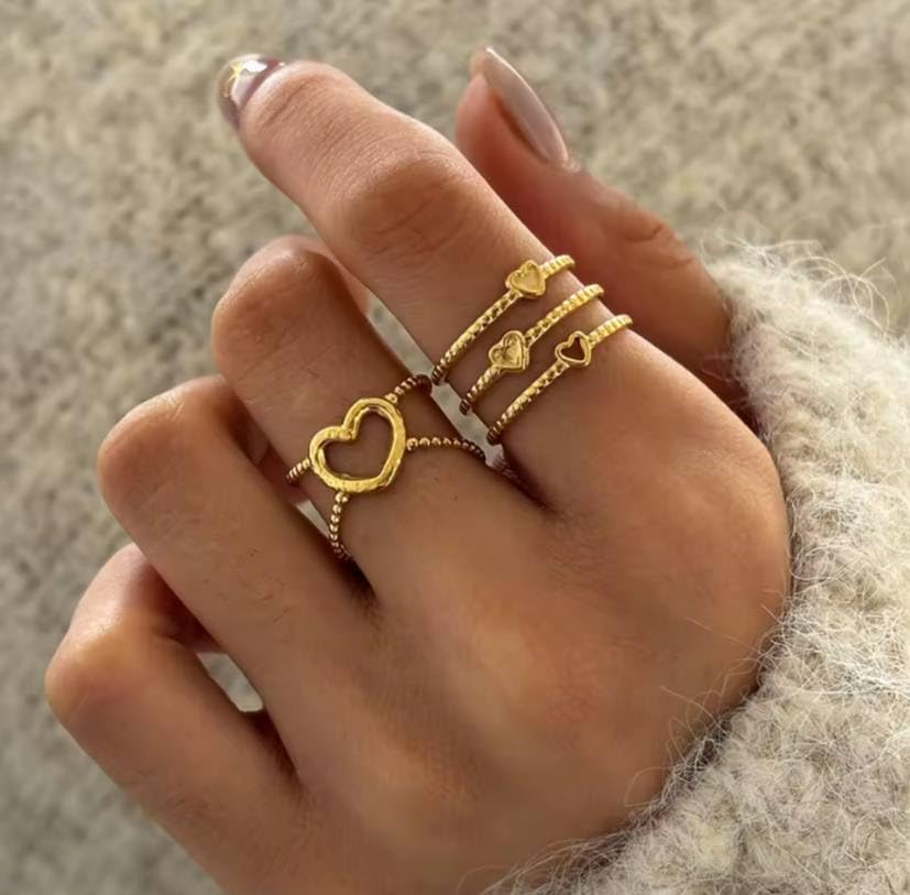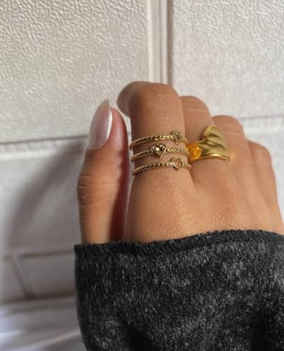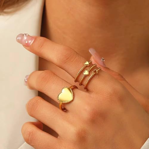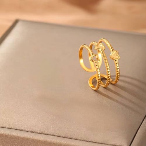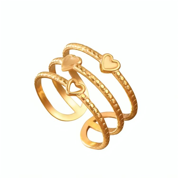 Generic - خاتم من الستانلس ستيل خفيف فاخر وأنيق على شكل قلب ثلاثي التراص بتصميم هيكل عظمي للنساء، مجوهرات للارتداء اليومي