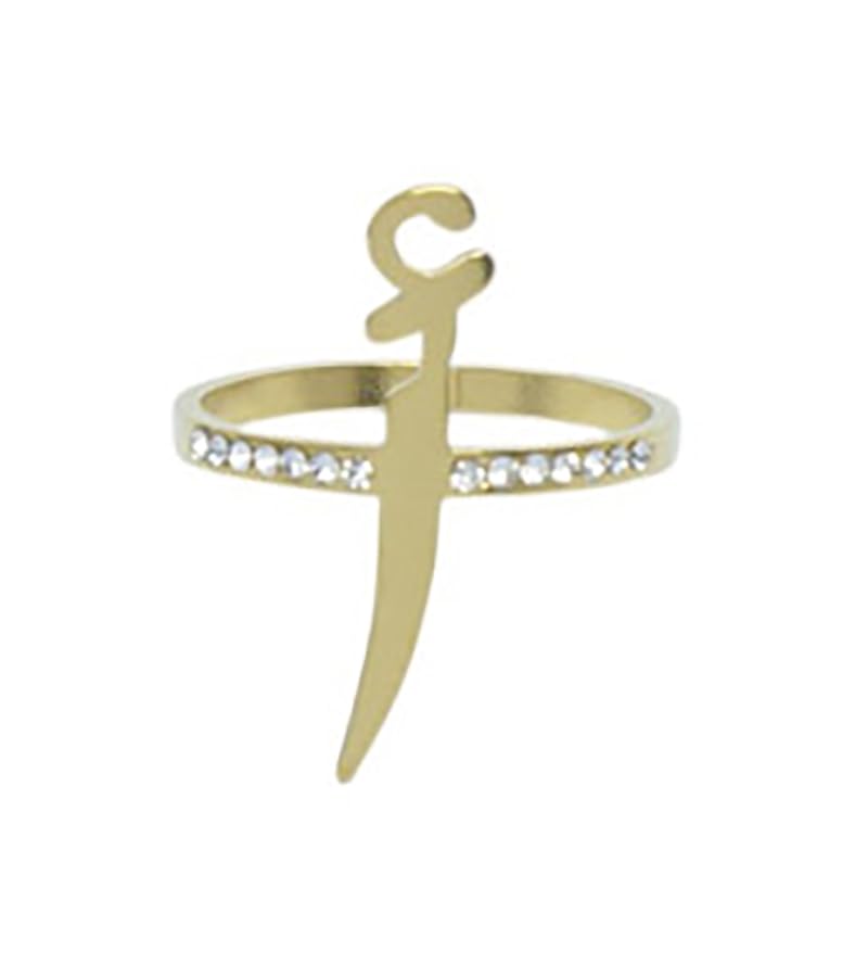 Generic - خاتم من الستانلس ستيل بتصميم حروف عربية للبنات - ذهبي - مقاس واحد