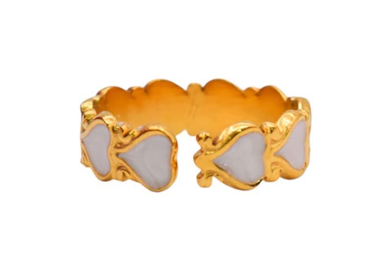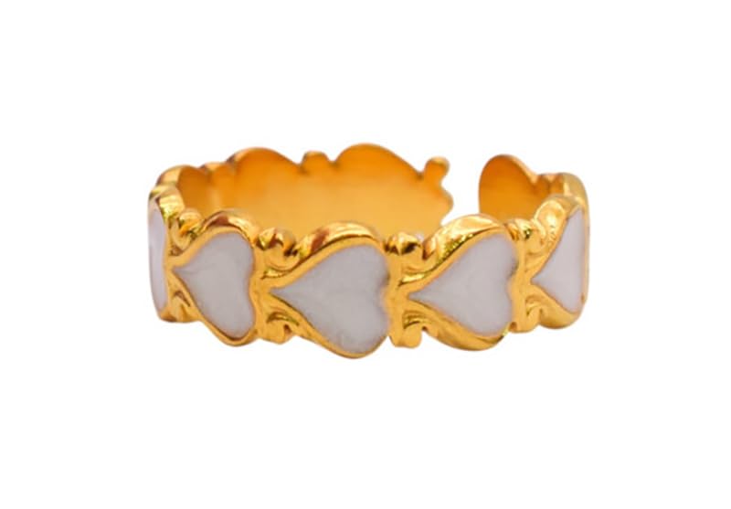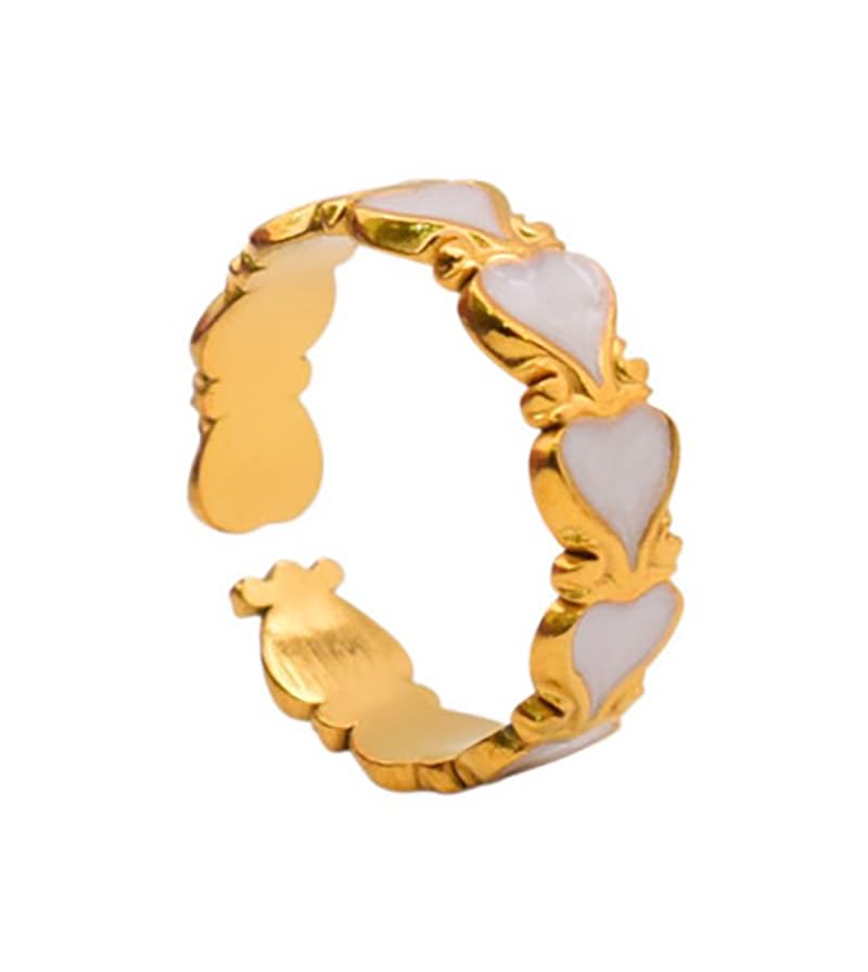Generic - خاتم من الستانلس ستيل بتصميم قلب للبنات - ذهبي وابيض - 78345