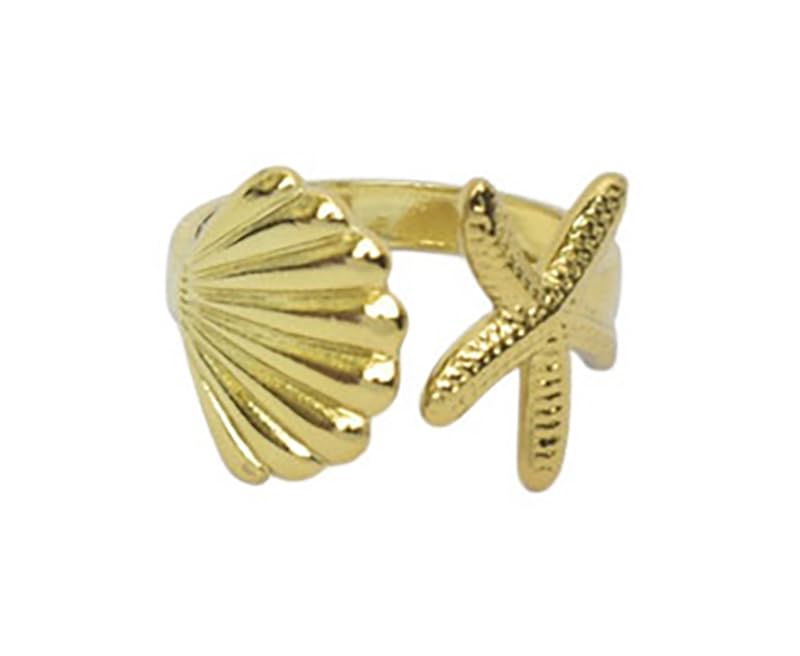 Generic - خاتم من الستانلس ستيل بتصميم صدفة ونجمة شفافة للبنات - لون ذهبي - مقاس واحد