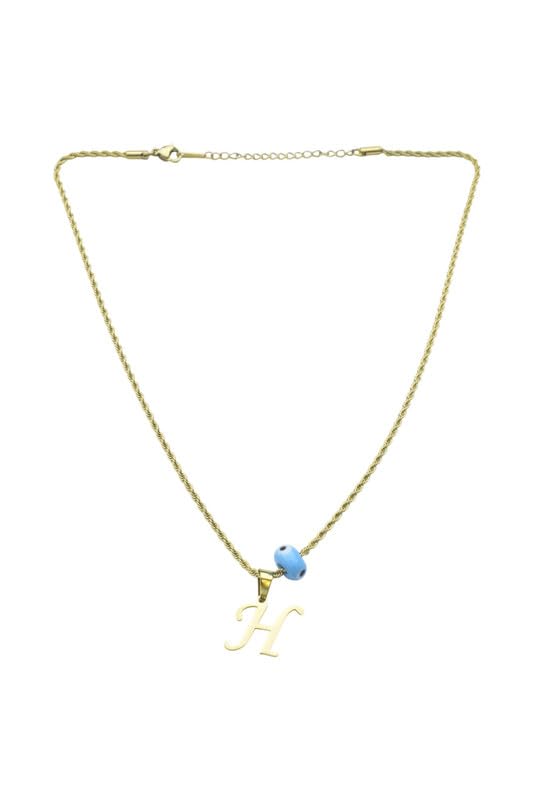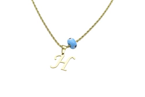 Generic - سلسلة من الستانلس ستيل بتصميم عين الحسد ودلاية حرف "H" للنساء - لون ذهبي