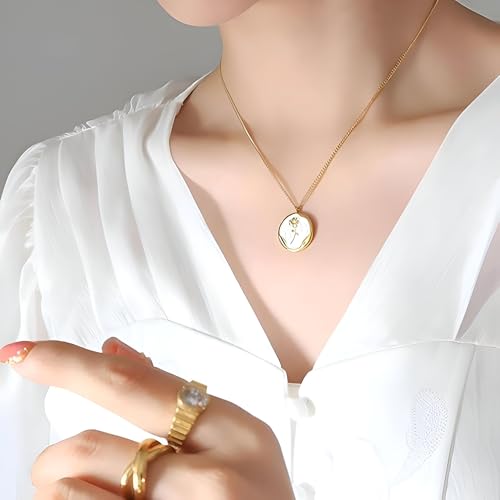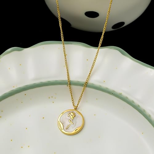 Generic - قلادة على شكل وردة من الستانلس ستيل - تصميم زهور لا يتأثر بمرور الزمن مع سلسلة بطول 18 انش، هدية مثالية لعيد الميلاد أو الزفاف أو الذكرى السنوية للأمهات والبنات.