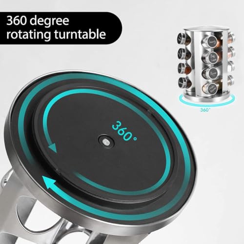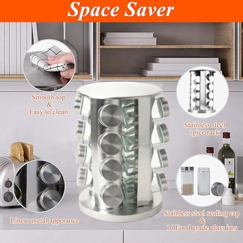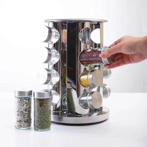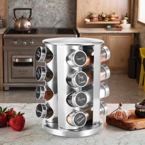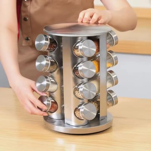 Generic - رف توابل دوار من الستانلس ستيل - 16 برطمان زجاجي مع ملصقات، منظم توابل دوار 360 درجة للتخزين على سطح المطبخ