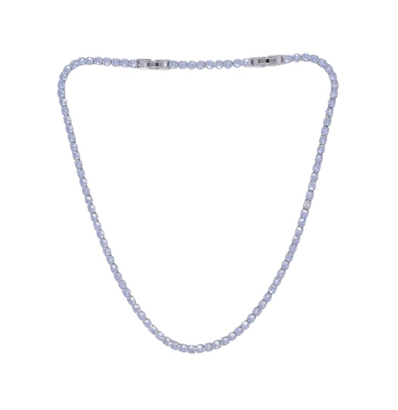 Generic - عقد تنس من الستانلس ستيل بتصميم دائري مرصع بحجر زركونيا مكعب للنساء - فضي