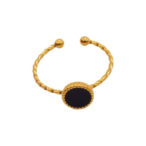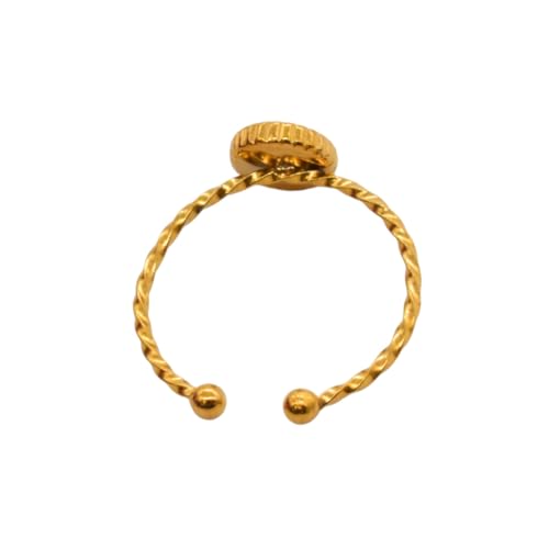 Generic - خاتم للنساء بتصميم دائري من الستانلس ستيل، مقاس واحد - ذهبي