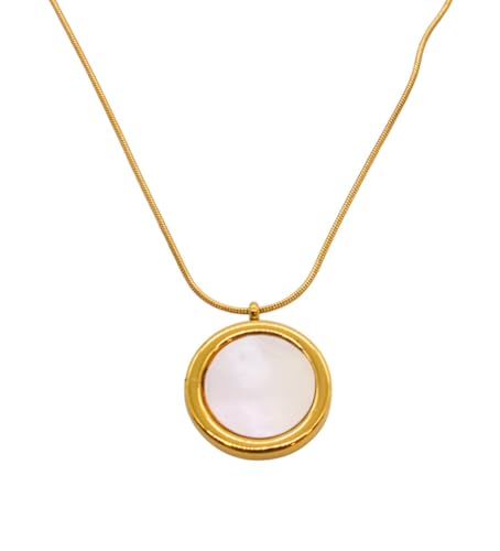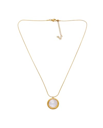 Generic - عقد بقلادة دائرية بيضاء من الستانلس ستيل للنساء - ذهبي FA434