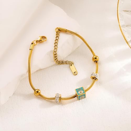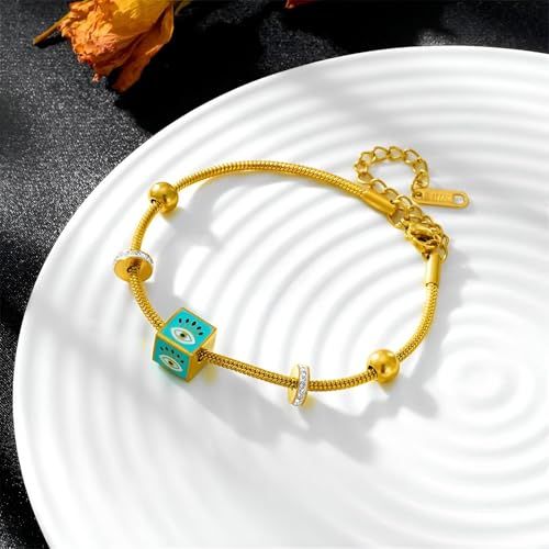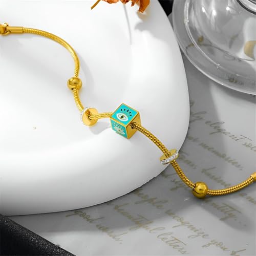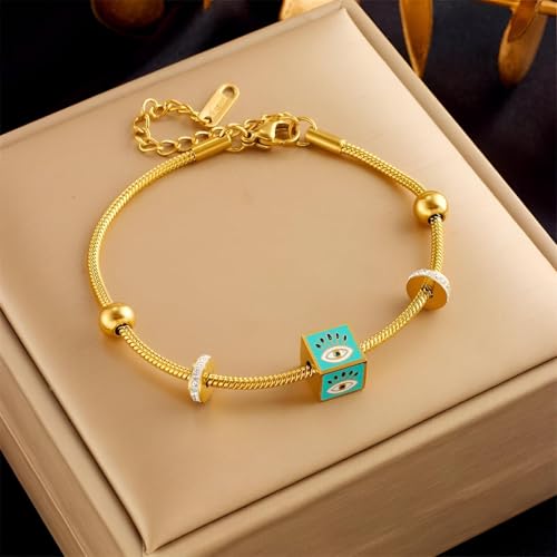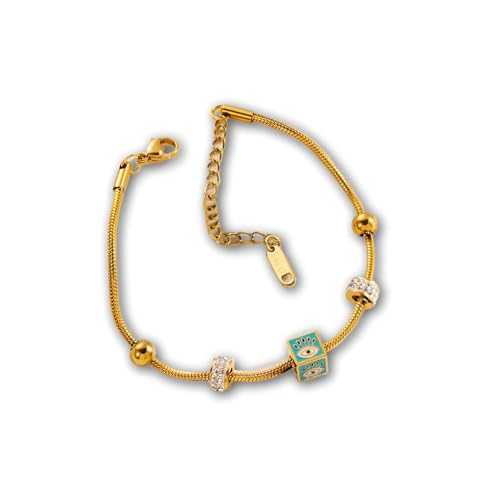 Generic - ستانلس ستيل - اساور عتيقة متينة مطلية بالذهب وأنماط تنقيط الزيت ومكعبات عين المصغرة للحصول على جمالية داكنة وغامضة.