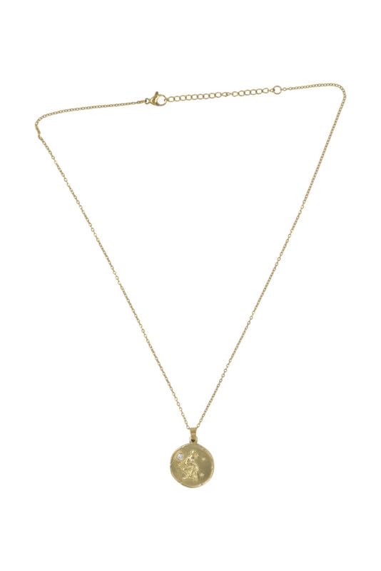 Generic - عقد بقلادة على شكل عملة برج القوس من الستانلس ستيل للنساء - ذهبي