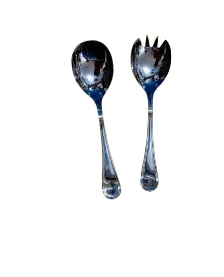 Generic - طقم تقديم سلطة من الفولاذ المقاوم للصدأ، قطعتين، ملعقة وشوكة، فضي