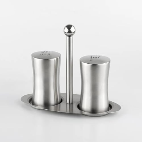 Generic - طقم ملح وفلفل من الفولاذ المقاوم للصدأ مع صينية، تصميم عصري، 3 قطع
