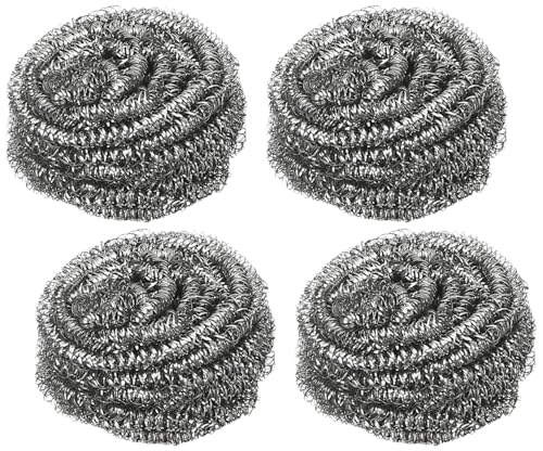 إسفنجات تنظيف متينة من الفولاذ المقاوم للصدأ في عبوة من 4 قطع للاستخدام الشاق في المطبخ، رمادي