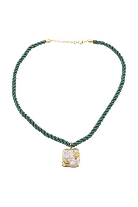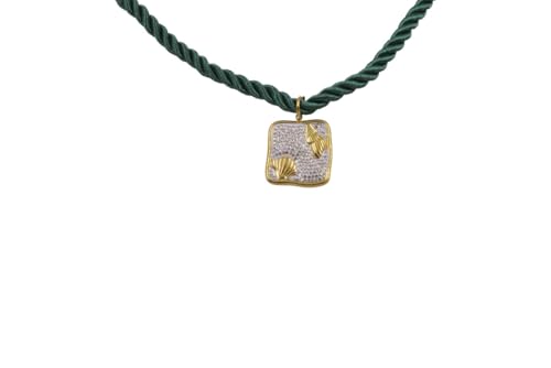 Generic - عقد بقلادة على شكل صدف من الستانلس ستيل للنساء - ذهبي واخضر