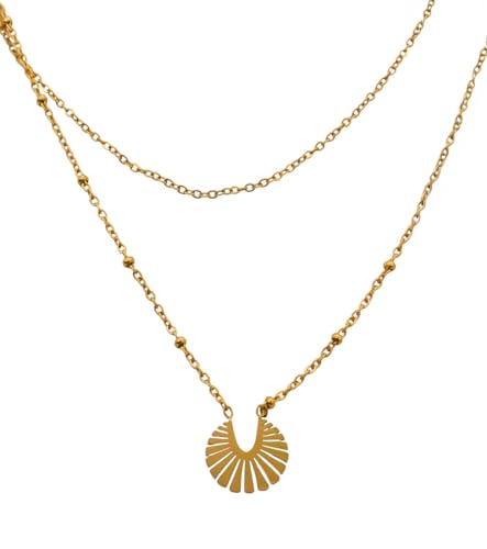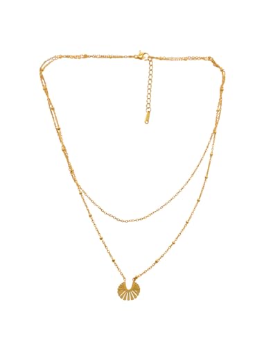 Generic - عقد بدلاية نصف دائرية من الستانلس ستيل مزدوج الطبقات للنساء - ذهبي