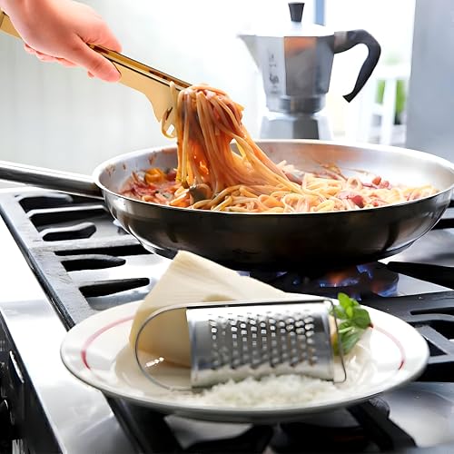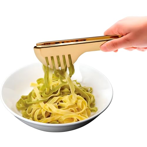 Generic - مساكة تقديم من الستانلس ستيل - اداة مطبخ متعددة الاغراض للشواء والقلي والسلطات والبوفيهات والتقطيع، لمسة نهائية ذهبية (موديل رقم 3)