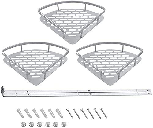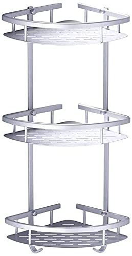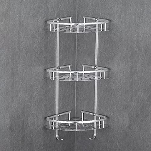 None-branded - رف من الستانلس ستيل مكون 3 طبقات زاوية للحمام مصنوع خليط معدني الالومنيوم تخزين للمنشفة منظم سلة مع خطاف ندى الدش مثلث