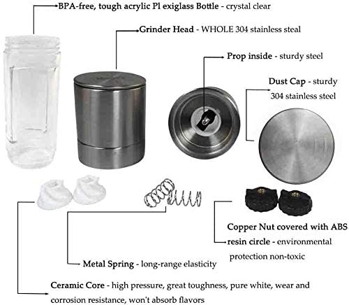- مناسبة لطحن الفلفل والملح البحري وغيرها من التوابل ذات الحجم الصغير.
