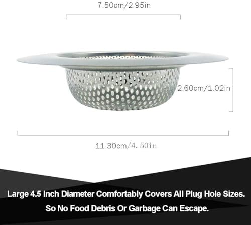 - تصميم الشبكة الدقيقة من الستانلس ستيل المقاوم للصدأ يضمن مرور الماء بسلاسة مع التقاط بقايا الطعام أو الشعر، مما يجعلها أداة مثالية لحماية نظام الصرف الخاص بك لفترة طويلة. كما أن حجمها الكبير (4.5 إنش) يجعلها مناسبة لمعظم أحواض المطبخ والحمام.