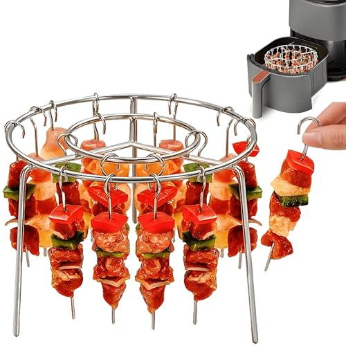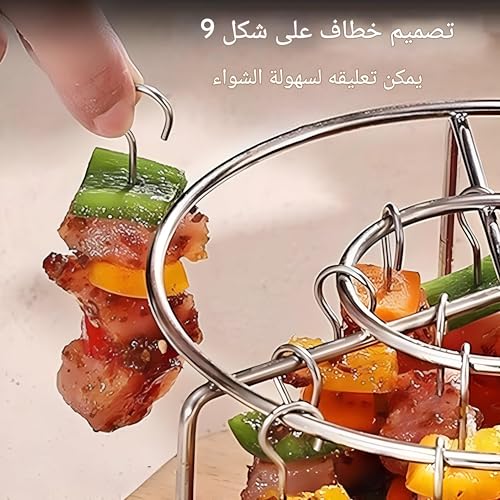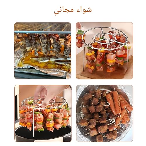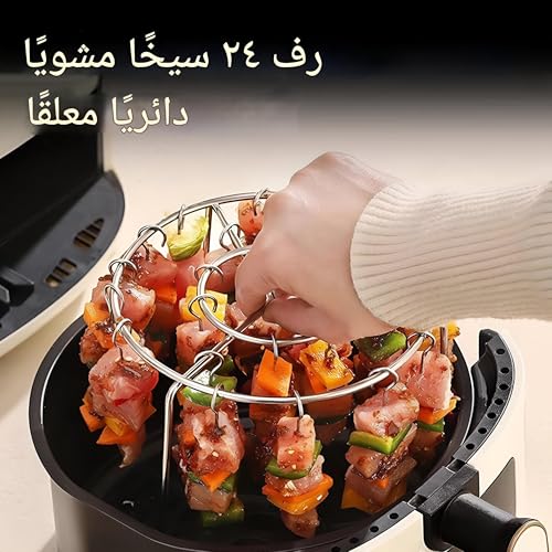 - تتضمن المجموعة رفًا قويًا من الستانلس ستيل و24 سيخًا قابلًا لإعادة الاستخدام يسمح بشوي اللحوم والخضروات وحتى تجفيف الفواكه على نطاق واسع، مما يحول المقلاة الهوائية إلى محطة شواء داخلية متعددة الاستخدامات مناسبة للتجمعات العائلية والحفلات.