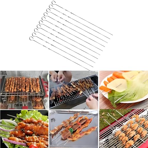 Generic - أسياخ من الفولاذ المقاوم للصدأ - ارتقِ بتجربة الشواء الخاصة بك مع هذه الأسياخ المسطحة، المثالية للشيش، والكباب، والدجاج، والروبيان، والخضروات، والمتوفرة في عبوة مريحة مكونة من 10 قطع لطهي الطعام في ال