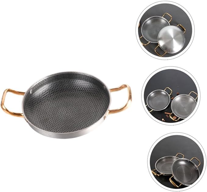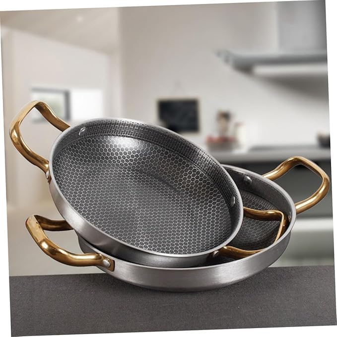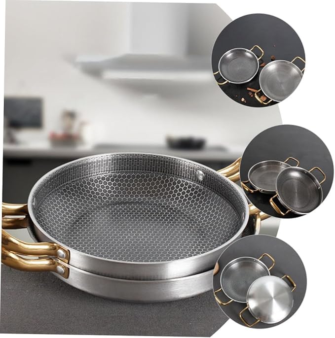 - طاسة قلي غير لاصقة -- المقلاة المصنوعة من الفولاذ المقاوم للصدأ وآمنة للاستخدام اليومي، وهي خيار رائع لطهي البيض والمأكولات البحرية وجراد البحر والأسماك وما إلى ذلك.