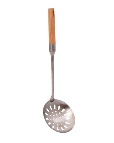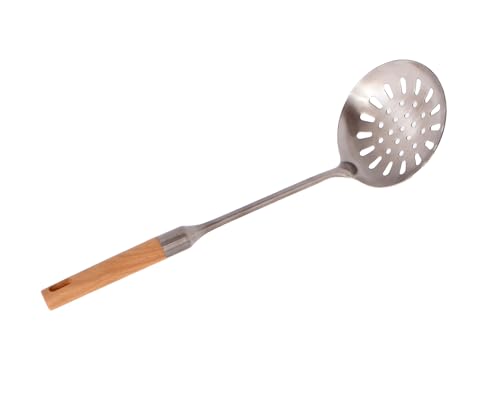 Generic - ملعقة مقشدة من الستانلس ستيل بمقبض خشبي، مغرفة مصفاة مطبخ