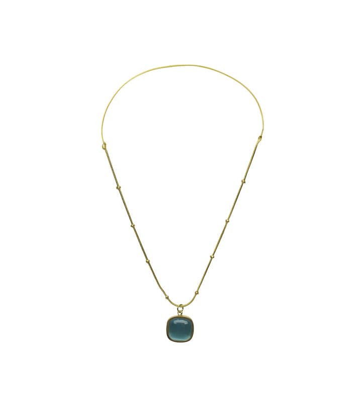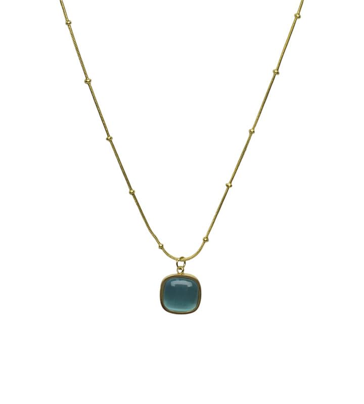 Generic - عقد رفيع من الستانلس ستيل بتصميم مربع للبنات - ذهبي وتركواز