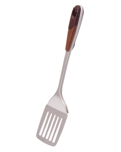 Generic - ملعقة مسطحة مسطحة مشقوقة من الستانلس ستيل بمقبض بني، ادوات طبخ للمطبخ