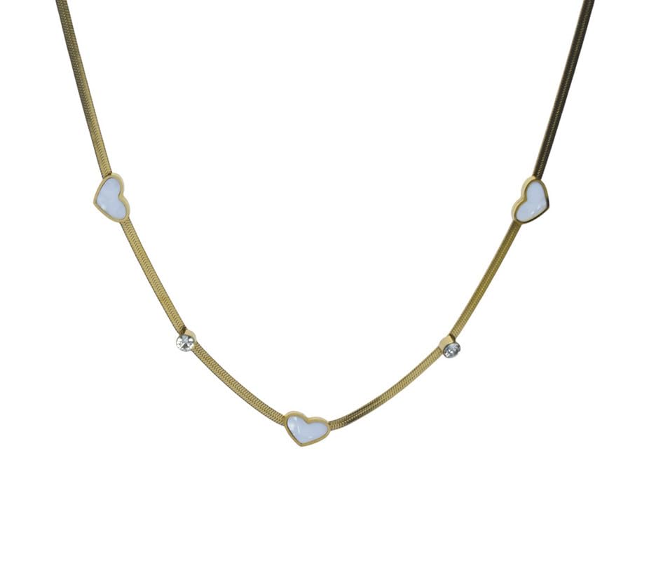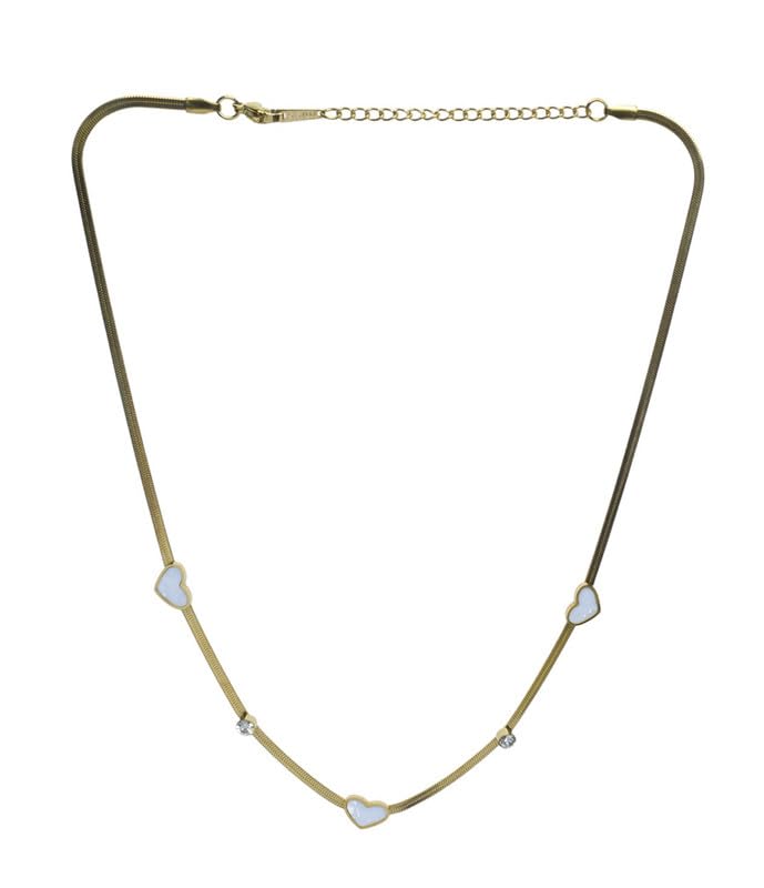 Generic - عقد بسلسلة بتصميم الوجبات الخفيفة من الفولاذ المقاوم للصدأ بتصميم قلب للبنات - ذهبي وأبيض