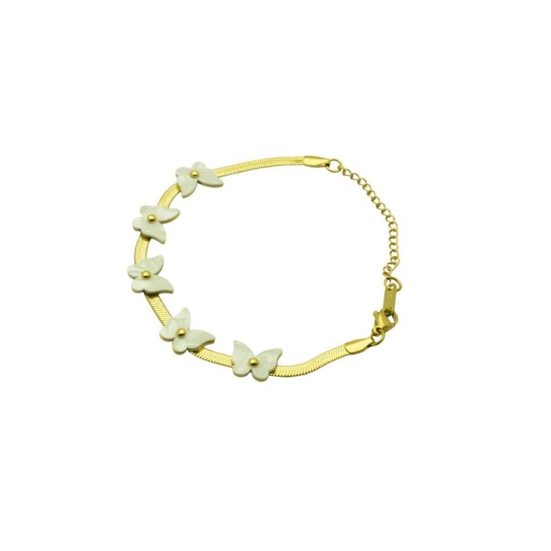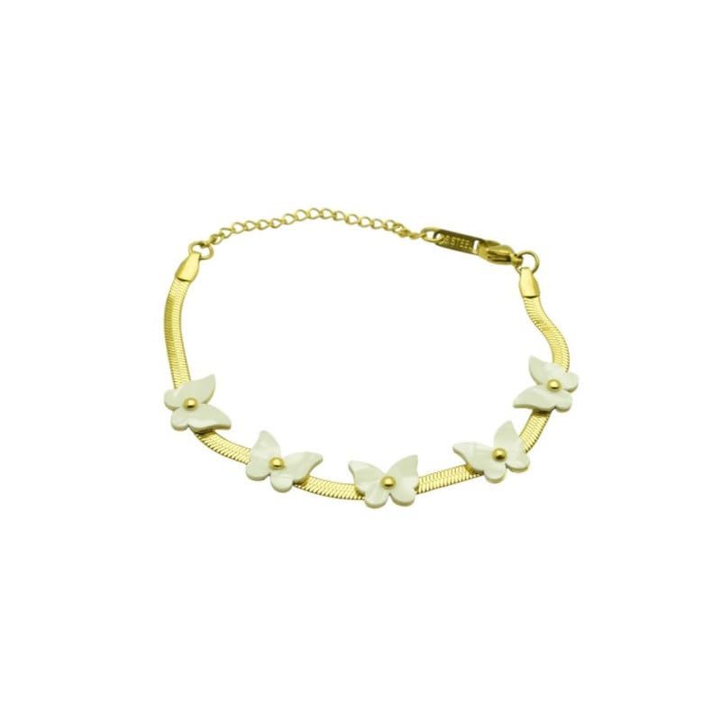 Generic - سوار سلسلة ثعبان من الستانلس ستيل مع تعليقة على شكل فراشة للنساء - ذهبي