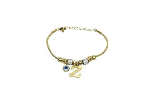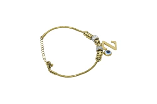 Generic - سوار سلسلة على شكل ثعبان من الستانلس ستيل مزين بحروف الاولى وعين الحسد للنساء - ذهبي
