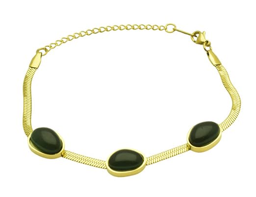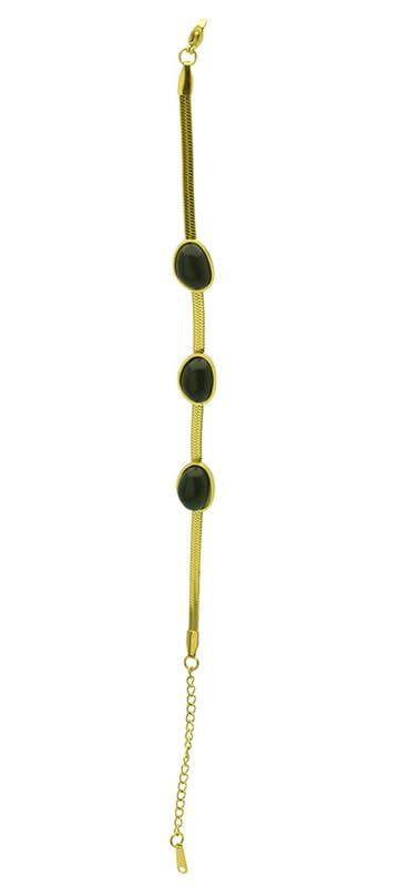 Generic - سوار سلسلة ثعبان من الستانلس ستيل مع احجار بيضاوية للنساء - ذهبي