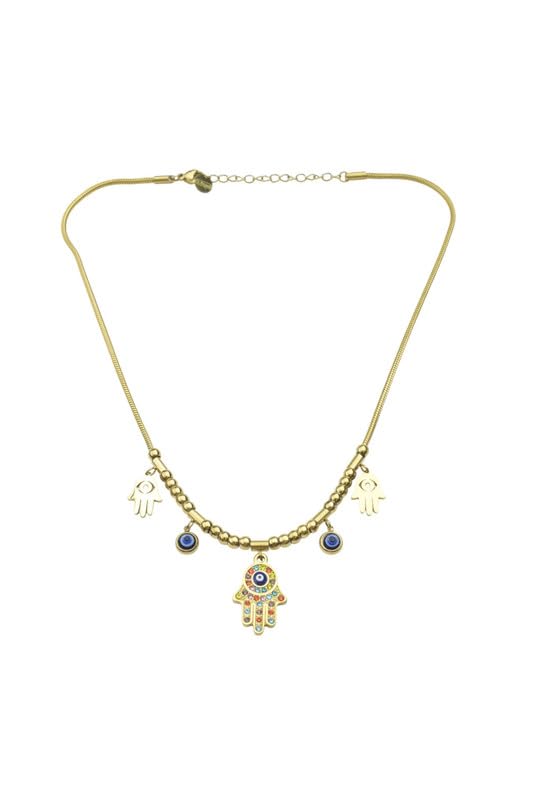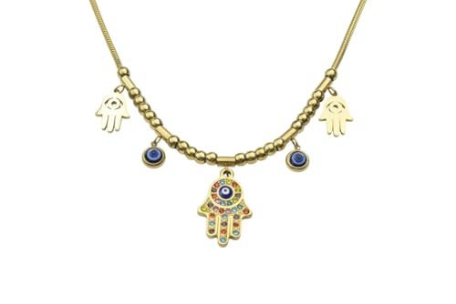 Generic - سلسلة على شكل ثعبان من الستانلس ستيل مع حلية همسة وحلية عين الحسد للنساء - ذهبي