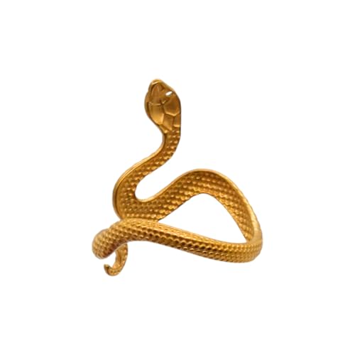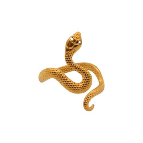 Generic - خاتم للنساء من الستانلس ستيل بتصميم ثعبان، مقاس واحد - ذهبي FA296