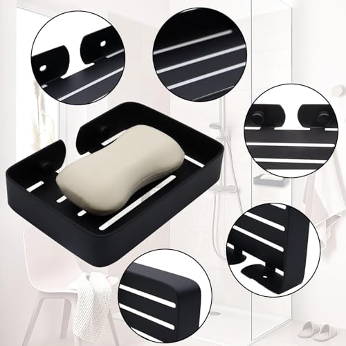 Generic - طبق صابون من الستانلس ستيل، حامل صابون يثبت على الحائط مع مسامير، حامل صابون قوي لبار الصابون، حامل صابون انيق للاستحمام والحمام وحوض المطبخ - لون اسود