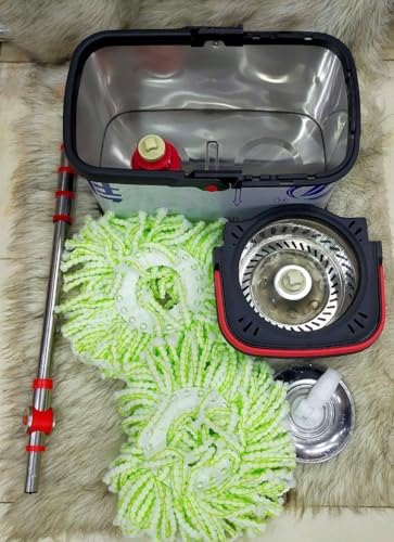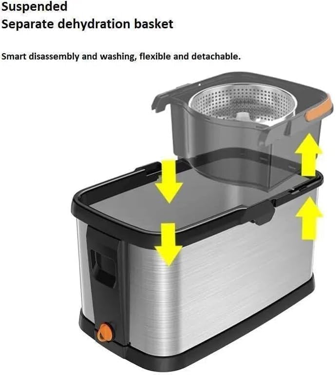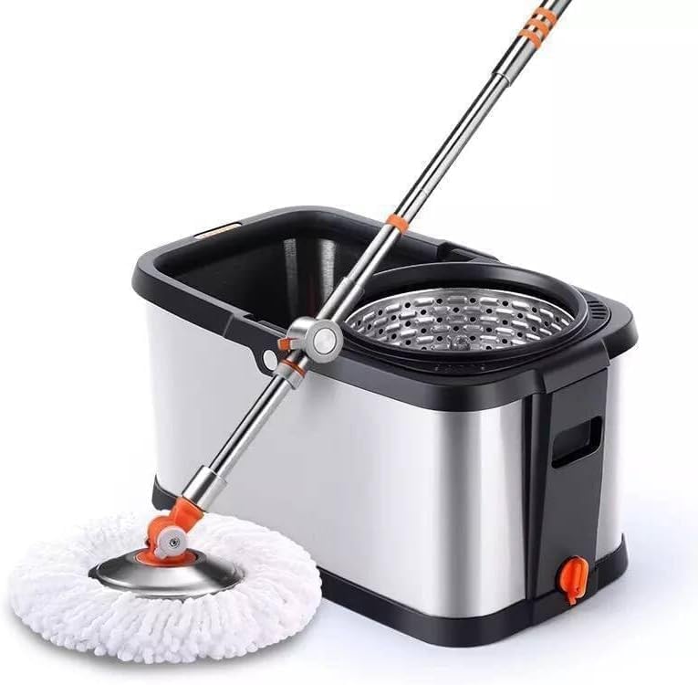 Generic - ممسحة دوارة من الفولاذ المقاوم للصدأ، نظام تنظيف أرضيات مع دلو مزدوج، رأس ممسحة قابل للتبديل، تصميم عصري