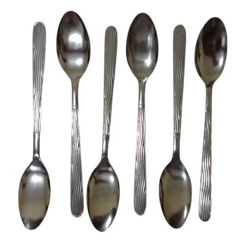 Generic - طقم معالق طعام ستانلس ستيل، ٦ قطع، تصميم كلاسيكي مخطط، لون فضي