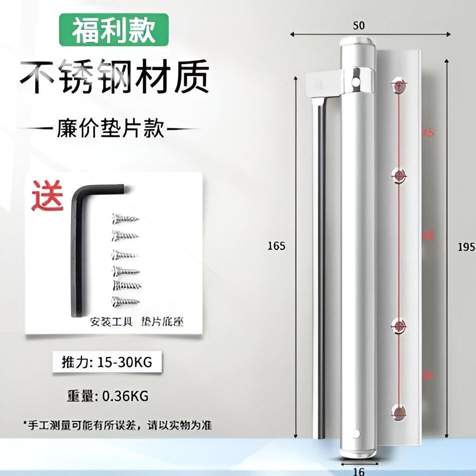 Generic - زنبرك من الفولاذ المقاوم للصدأ - زنبرك إغلاق هيدروليكي شديد التحمل مع قوة قابلة للتعديل مزود بمسامير تثبيت ومفتاح الين ولمسة نهائية فضية أنيقة يضمن إغلاقًا سلسًا وصامتًا على أي باب
