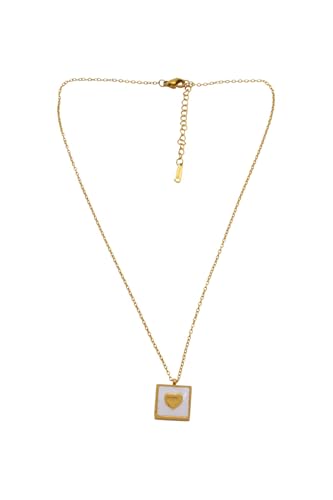 Generic - قلادة مربعة من الستانلس ستيل بدلاية على شكل قلب ابيض وذهبي للنساء - ذهبي